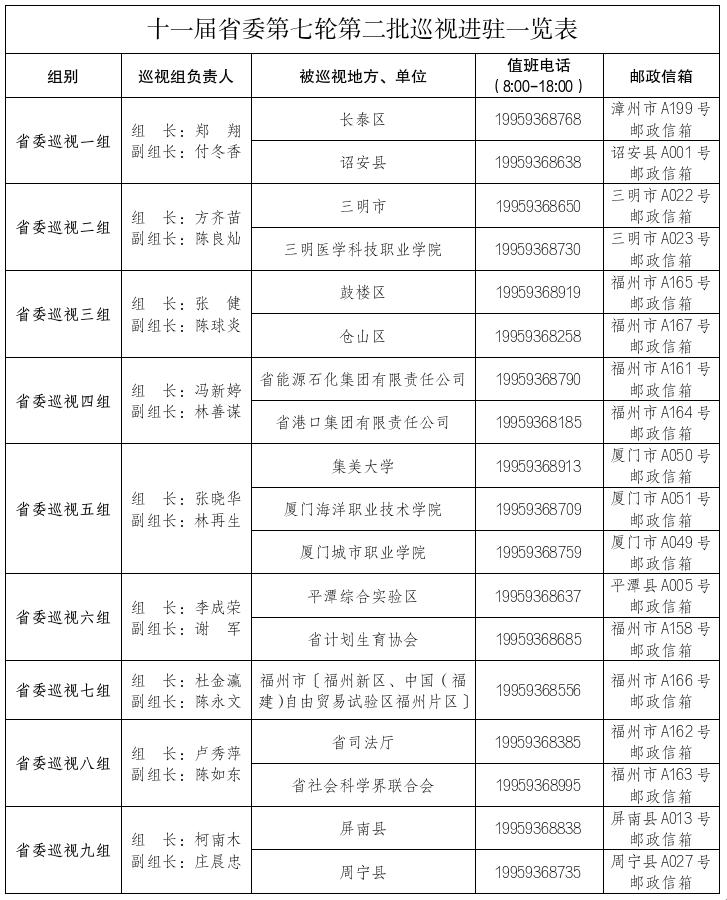 根据省委部署,截至10月15日,十一届省委第七轮第二批巡视完成进驻工作。9个巡视组将对18个地方、单位开展常规巡视。