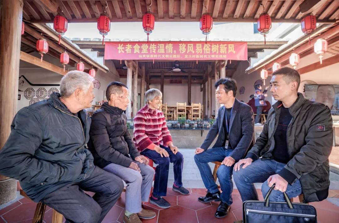 永春县纪委监委聚焦农村留守老人养老难题,推动民政部门探索“食堂+学堂”老年人服务新模式。目前,该模式已覆盖全县36个点位,年服务老人近20万人次。图为该县仙夹镇纪委监察组干部在龙水村长者食堂了解助餐服务情况。(康庆平 摄)